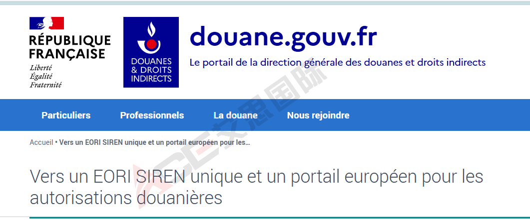 近期,法国海关(DGDDI)在其官网正式发布公告,明确推进 EORI 号码由 SIRET 层级统一升级为 SIREN 层级。