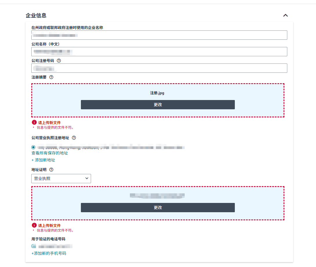 我在用香港公司注册亚马逊,然后没过,需要重新提交资料,麻烦大佬们看下这几项需要哪些文件填写