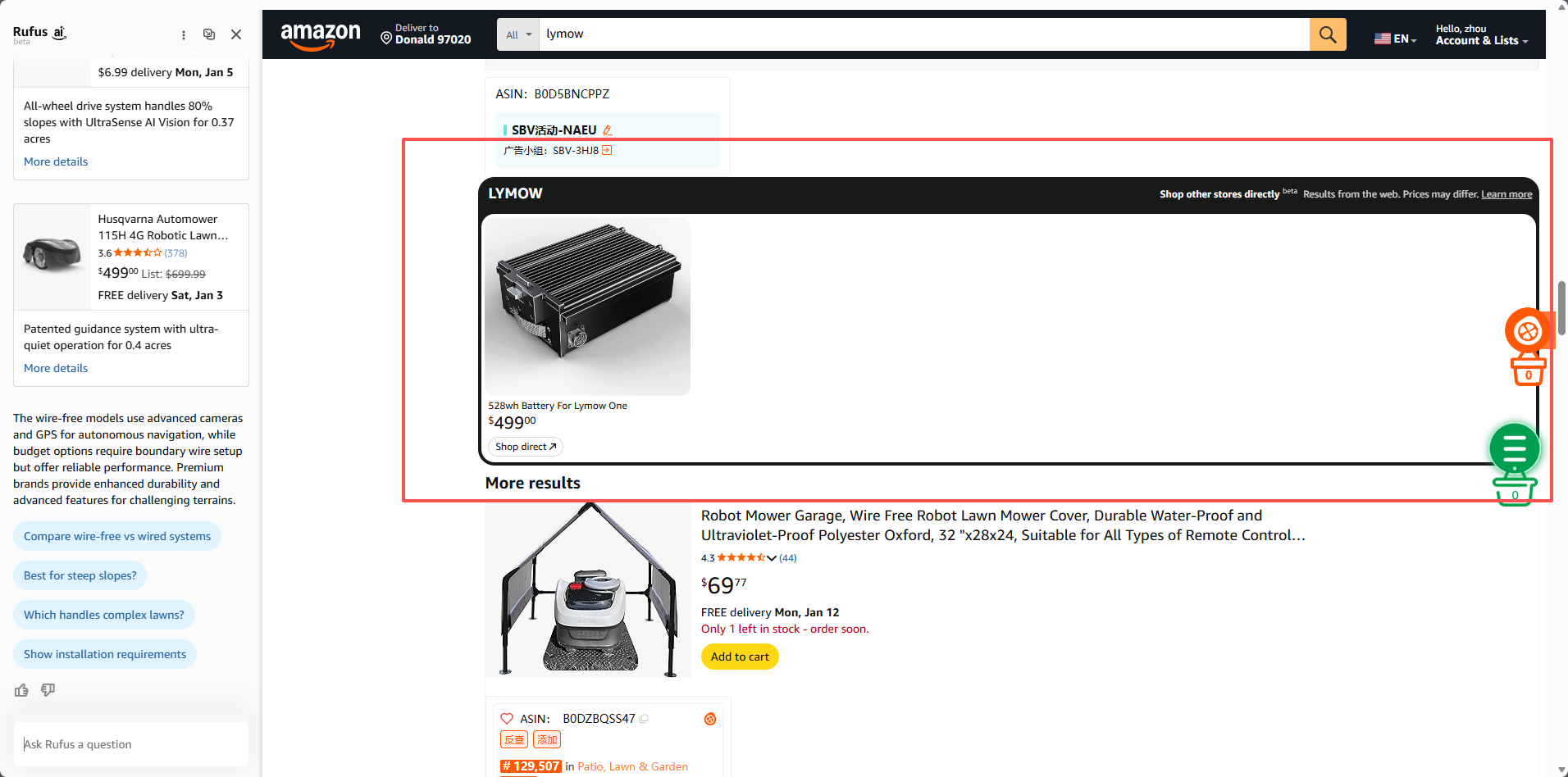 核心逻辑: 亚马逊允许在搜索结果中展示**“亚马逊站内没有卖”的商品,并提供一个“Shop direct”(直接购买)**的按钮。