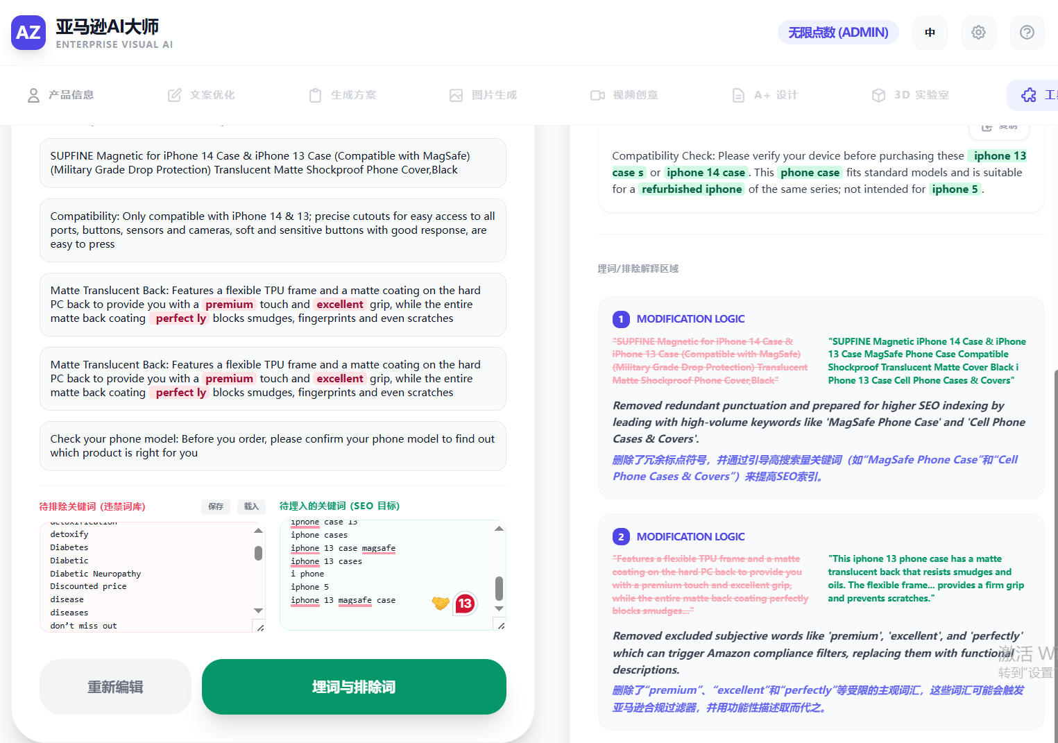 工具箱, 增加了 Listing埋词和排除违禁词功能: