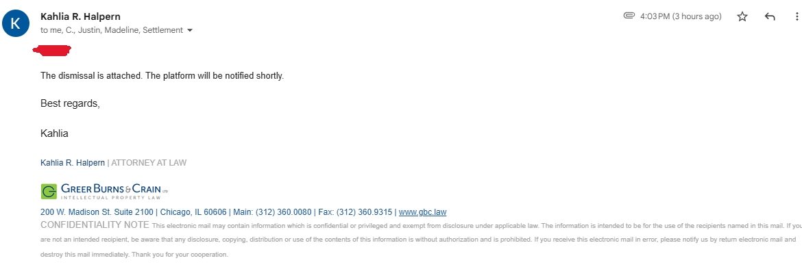 没想到!12 月 10 号那天,服务商突然发来协议书,说 GBC 同意 1000 美金和解了!我简直不敢相信自己的眼睛,反复看了好几遍,确认是真的,赶紧签字、汇款,生怕对方反悔。第二天就收到了回签的协议书和撤诉书,那一刻我才真正松了口气,感觉压在心里的大石头终于落地了。这时候我店铺的冻结金额已经涨到 7 万美金了,真的再晚几天,我都不知道该怎么办了。​