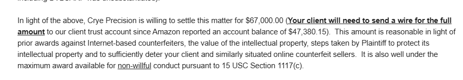 接下来的几天,我基本就没合过眼,天天刷论坛、问同行,通过各种公众号加了好几家服务商,深圳的、四川的都有,天天跟他们语音聊到半夜。结果每一家都说我这情况 “没救了”,说对方是 GBC,出了名的难缠,我侵权产品卖了这么多,和解金最少得 1.5 万美金,多则 2 万。我算了算,这款产品本身利润就薄,真要是赔这么多,今年一年等于白干,甚至还得倒贴,那种绝望感,真的只有经历过的人能懂。​