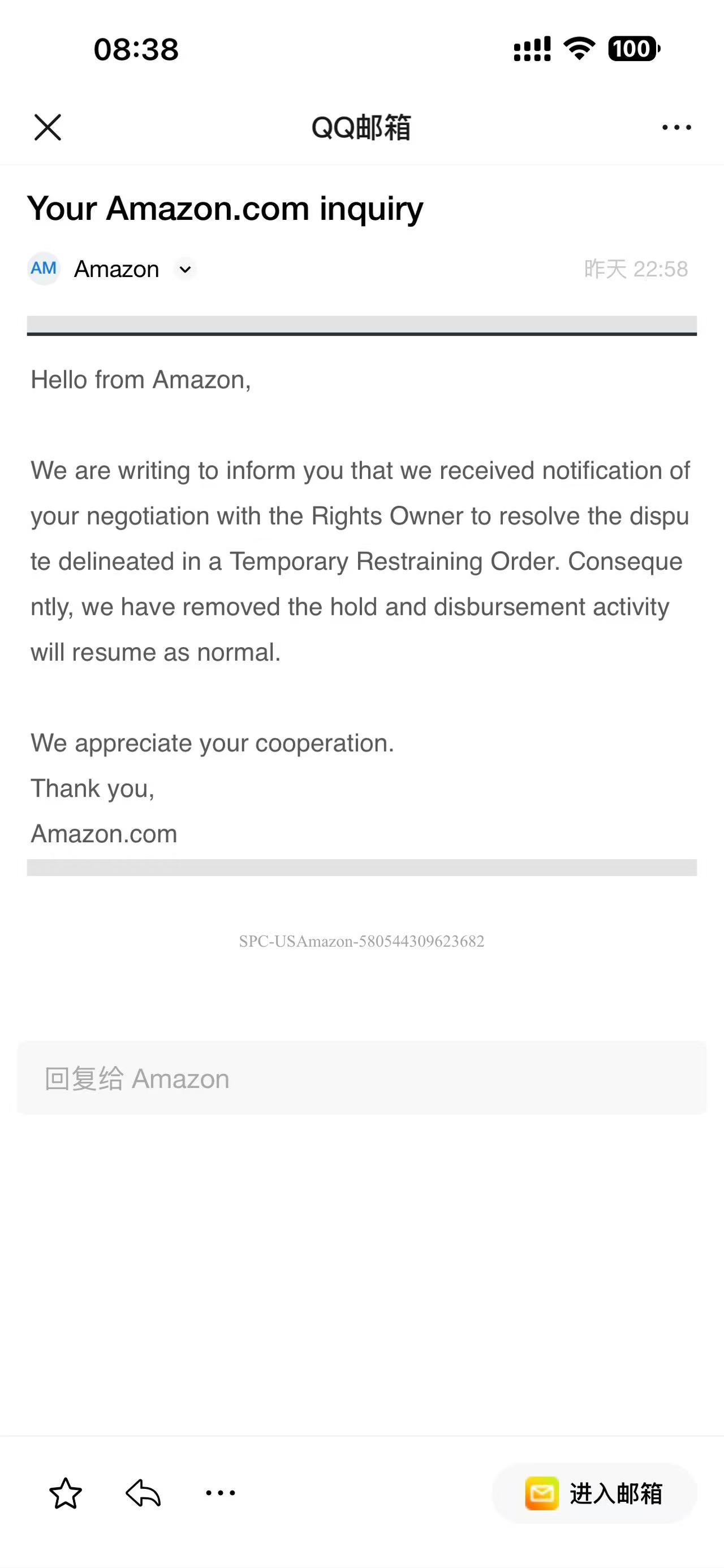 一直到 12 月 17 号,亚马逊的解冻通知发过来,我看着后台的资金能正常提现了,才彻底放心。后来我特意跟服务商聊了聊,才知道他们是拿着我自己注册的版权,再加上产品分析对比,还有他们律师经常跟 GBC 打交道,知道怎么跟他们谈,才把价格压下来的。​