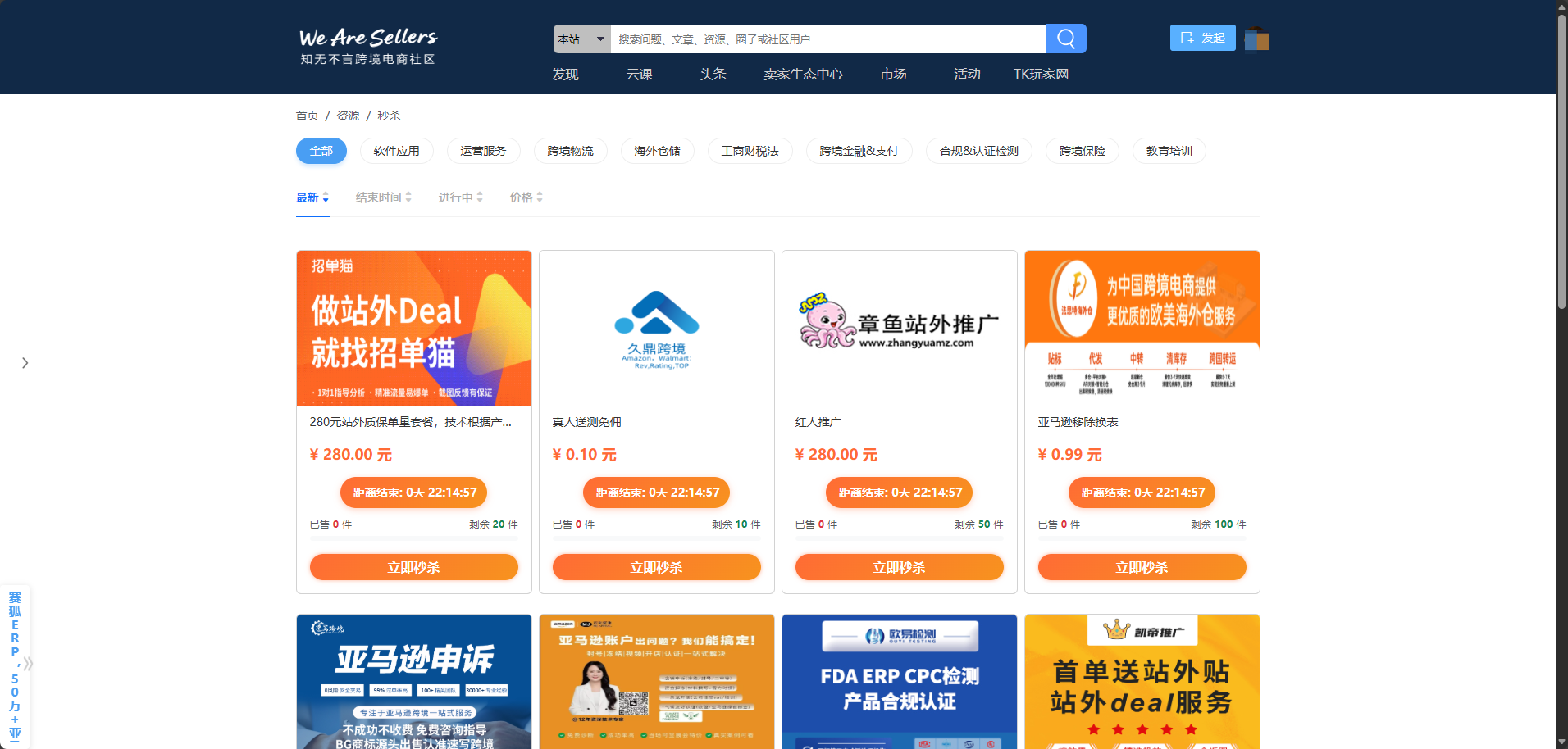 从此不用在多个平台间切换!知无不言卖家生态中心整合了亚马逊、TikTok、Walmart等多平台运营所需的各类资源,从物流、仓储、合规,到工具、营销、培训,一站式覆盖品牌出海全链路需求,让资源选择更安心、更高效。