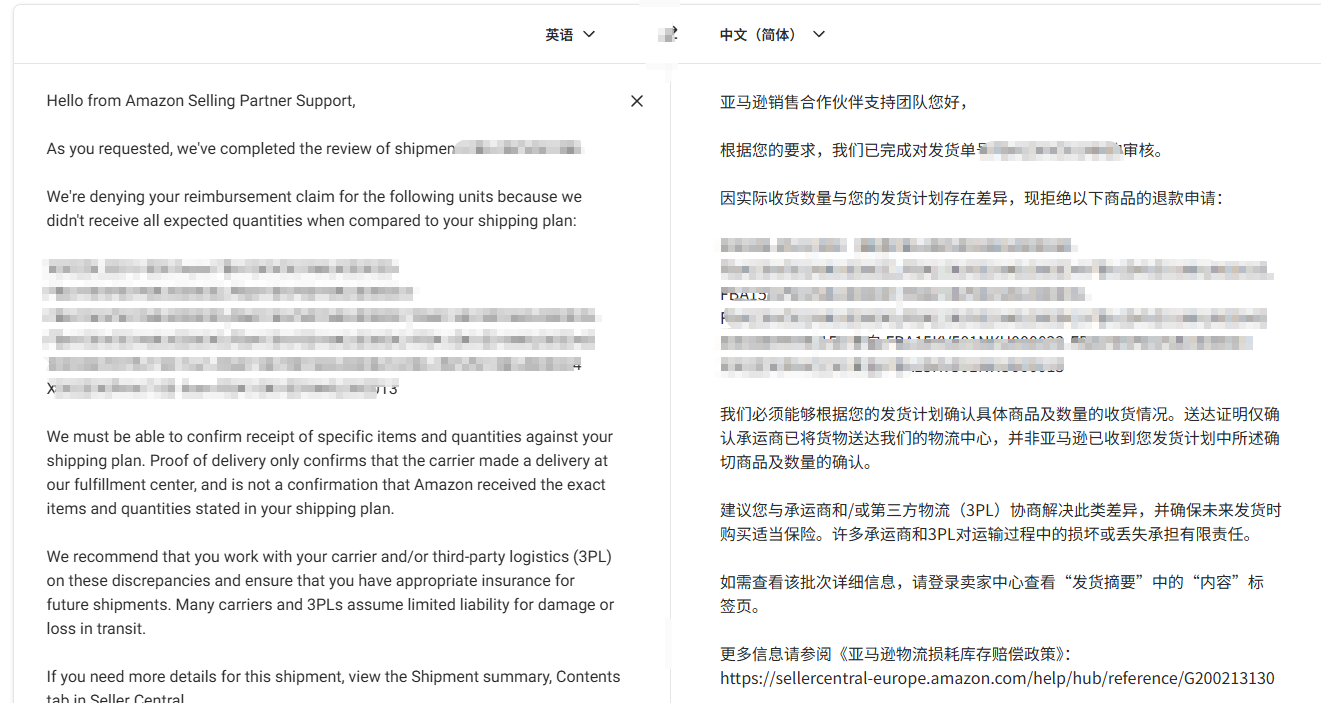 关于货件差异调查后,亚马逊拒绝赔偿。开了好几个case都是同样的回答:我们必须能够根据您的发货计划确认具体商品及数量的收货情况。送达证明仅确认承运商已将货物送达我们的物流中心,并非亚马逊已收到您发货计划中所述确切商品及数量的确认。