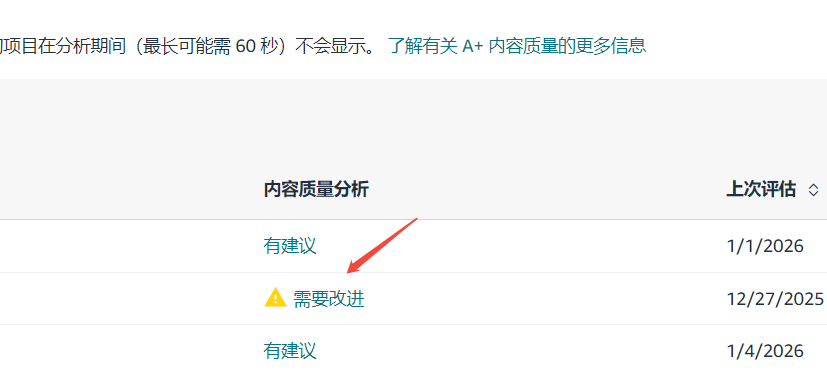 亚马逊后台近日上线了一个针对 A+ 页面的 “内容质量分析” 功能。