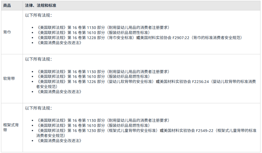 亚马逊政策首先对三种婴儿背带进行了清晰界定,这是合规的第一步,决定了后续适用哪套标准。
