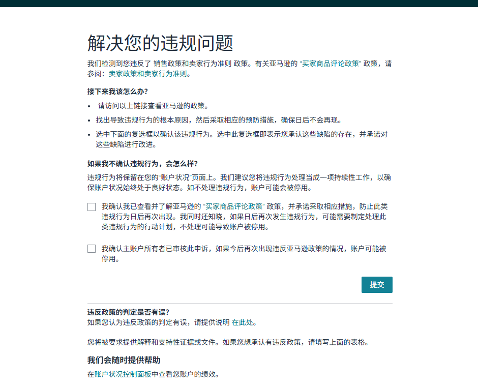 违反买家评论政策-站内信违规,这种情况是直接打钩承认,不需要提交行动计划吗?