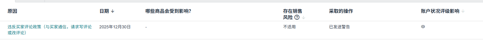 12月收到违规警告,警告信里没有具体ASIN。