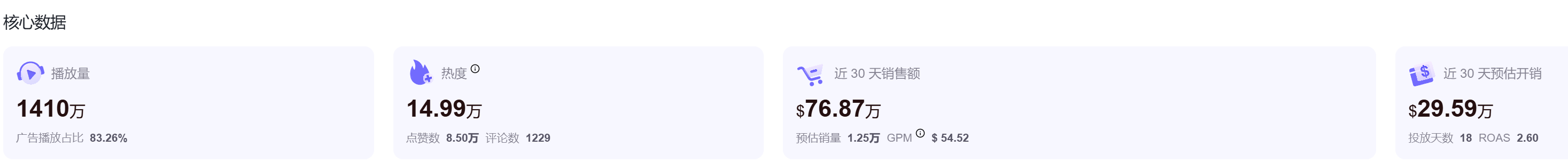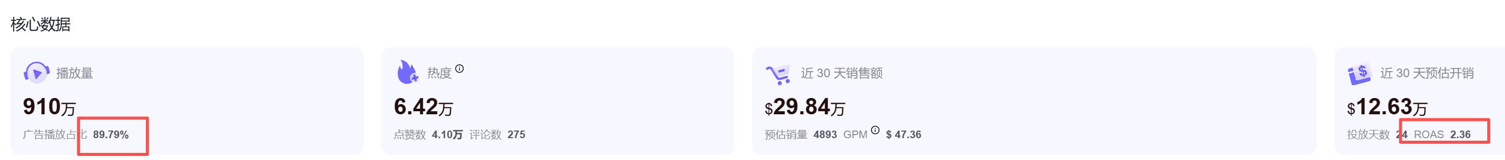 如果用 1300:1 的播放转化率, 再结合 CPM 10 美元 反推, 它的广告费用占比大约在:13.18% 左右这款产品一个月 GMV 约 506 万美元,在这样的模型下,