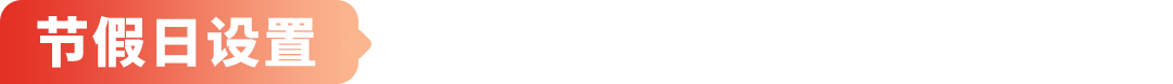 或者,您也可以使用配送设置中卖家设置的节假日或者自定义节假日(2025年12月已上线美国、英国、德国、日本站点)来设置您自己的节假日,您的公司虽然这些天内不营业,但买家能够看到您的商品并且能正常下单。系统会将发货和承诺送达日期顺延您设定的节假日天数。有关更多详情,请参阅管理节假日设置。
