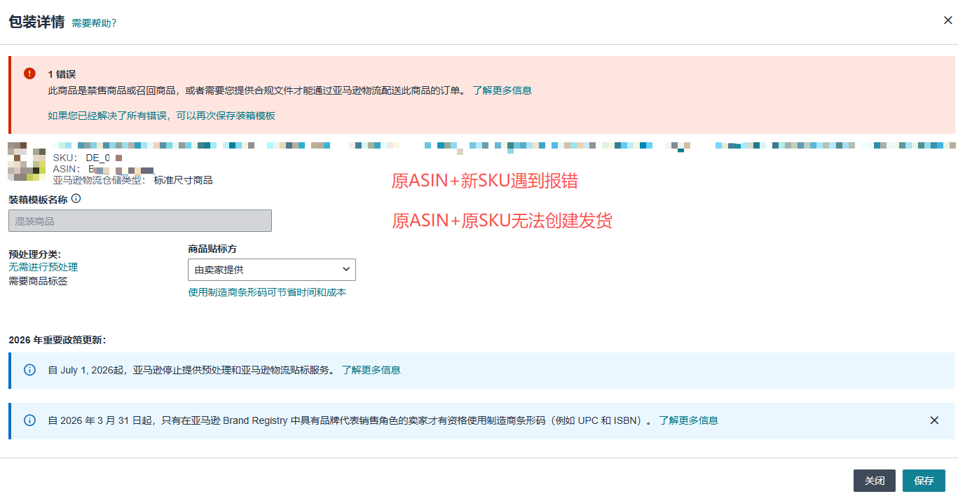 在亚马逊德国站给同一个ASIN换了个新SKU,结果FBA发货完全卡住了