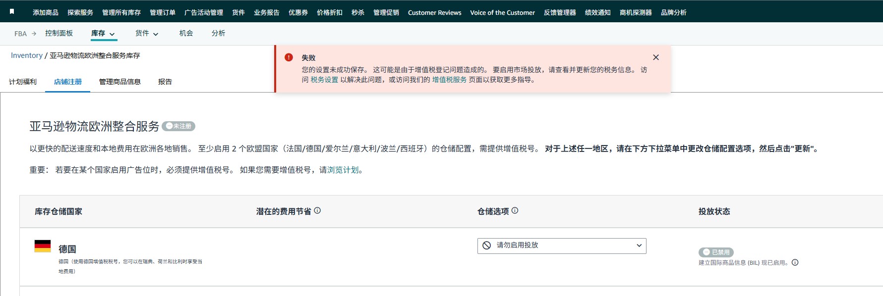 社区 发现 物流和仓储管理 德国换主体后vat不可用,德国仓储被关闭...