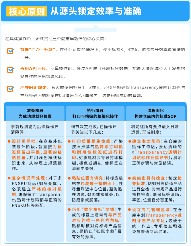 对于贴标,要真正做到高枕无忧,杜绝错标、漏标、返工等问题,还需要将零散的操作化为可复制、可检查的标准流程。这不仅是为了通过一次审核,更是为了长期、稳定地享受Transparency透明计划带来的保护,同时提升整体供应链效率!