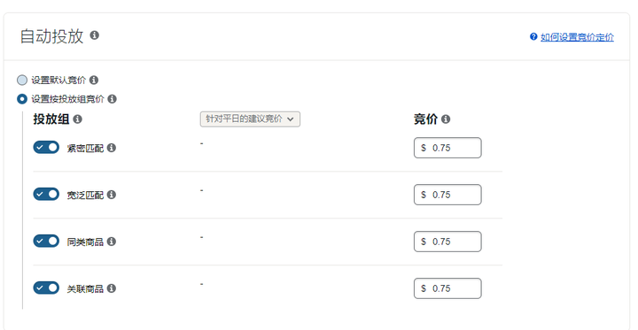 3.5-1 自动投放 选择投放组以及设置竞价