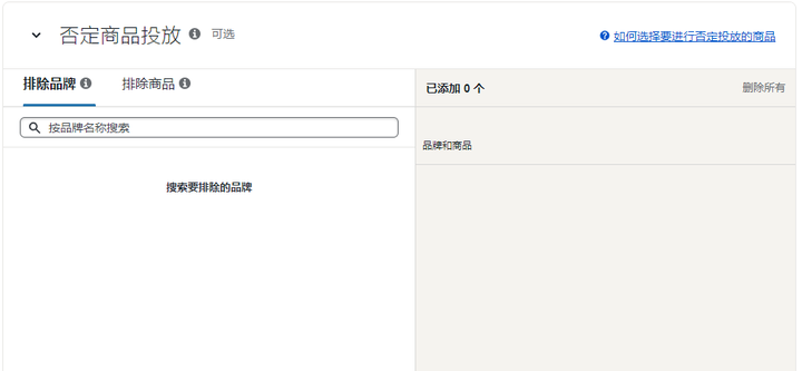 可以排除品牌也可以排除商品,也可以先不填后面再去否定。