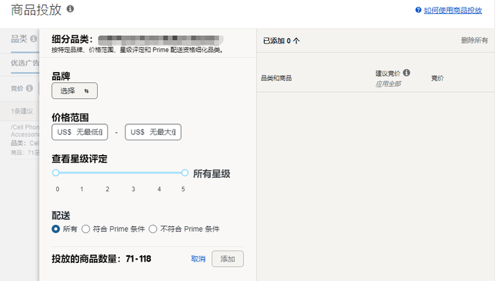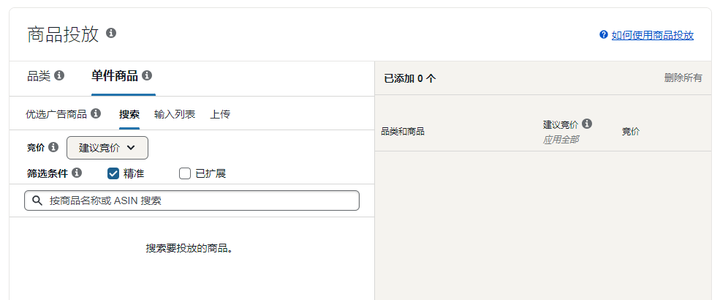 2)商品投放 可以选品类也可以选ASIN