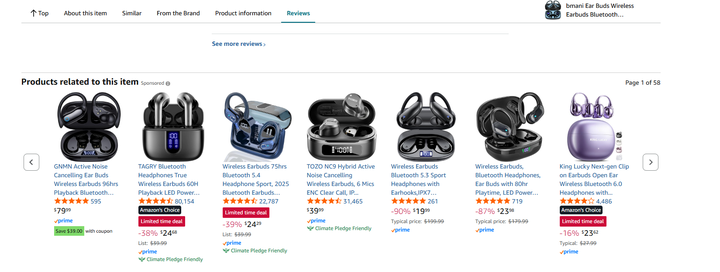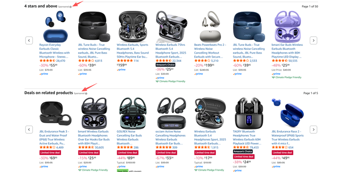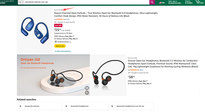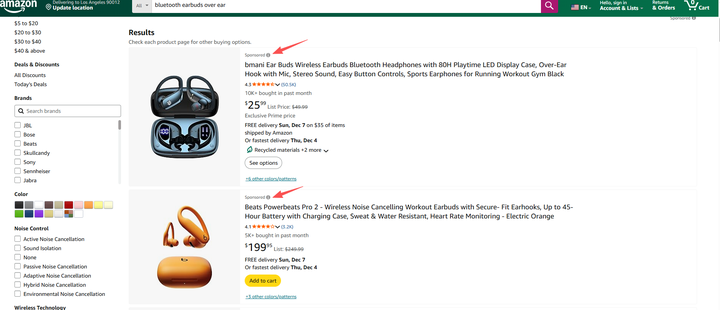 以关键词 bluetooth earbuds over ear 为例。