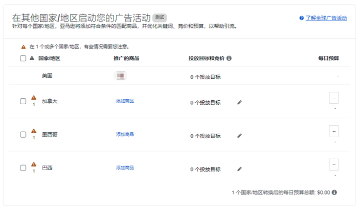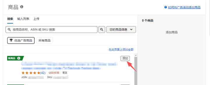 注意检查ASIN和SKU,确认是有库存能做广告的这个。