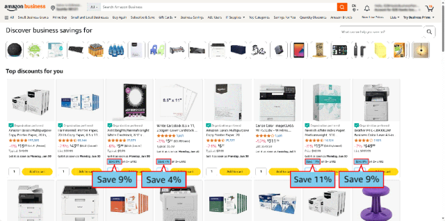 (1)由于活动页展示资源有限,设置了企业折扣后的产品是否入选活动,亚马逊会综合考虑企业折扣深度、企业买家浏览量、企业购销售额等多方面因素进行展示,因此并非所有企业折扣都会被活动页面展示;