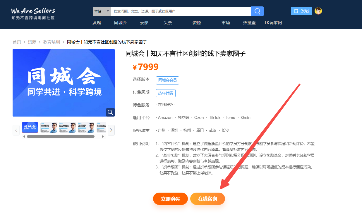 - 为此,我们在每个入驻服务商资源页面,全新增加了 “在线咨询”入口。旨在让卖家的需求能直接找到对的人,让资源对接更简单、更直接!