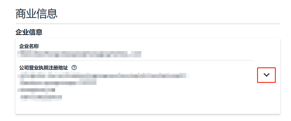 第二步:点击【企业信息】右侧向下箭头以便您可以在【公司营业执照注册地址】栏更新公司注册地址