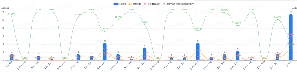 第3,分析价格区间与竞争格局,得出:价格带两极分化的核心特点。