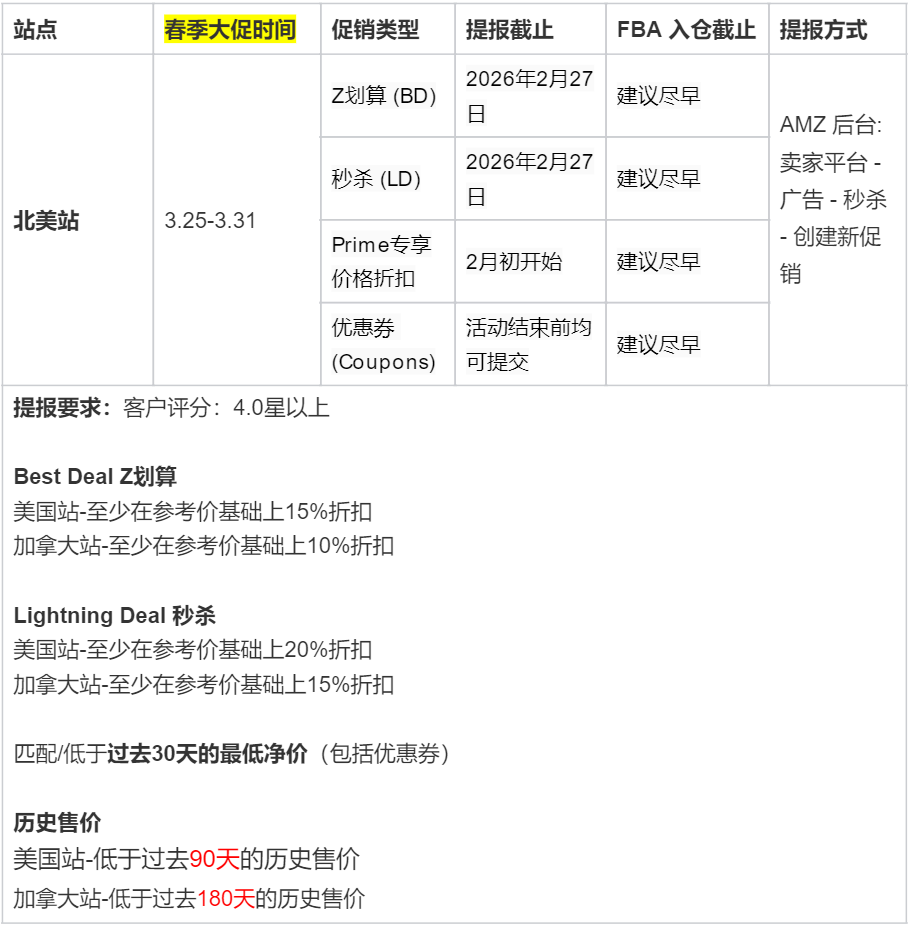 2026 年亚马逊春季大促即将拉开帷幕,北美、日本、欧洲三大站点已陆续公布活动档期与提报细则。