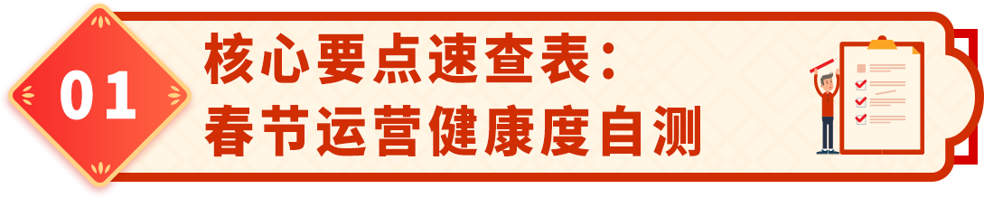 在假期正式开始前,您可以通过下表快速评估店铺的健康状况,并立即执行关键动作(建议在假期前3-5天完成):