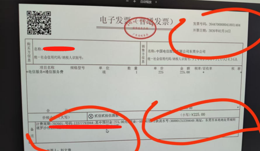 1 我问了我这边的电信宽带营业厅,他们提供的账单不是我之前见到的那种,而是下面这样的发票这种。像这样的发票,亚马逊认吗?(因为目前还没买房,所以也无法提供水、电、煤的这些账单)