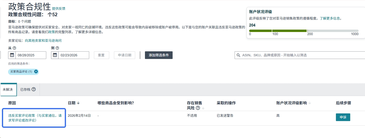 【紧急求助】亚马逊收到绩效警告信(疑似违规操纵评论),如何申诉?是否会触发二审或封号风险?
