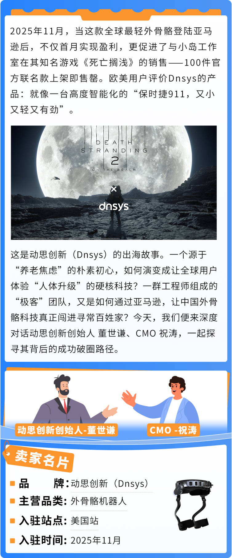 尽管验证了用户对于外骨骼的旺盛需求,但想要真正大规模、可持续地触达主流消费者,动思创新仍需要一个强大的商业支点。最终,他们的选择是:亚马逊,而最终的市场反馈也远超团队预期。