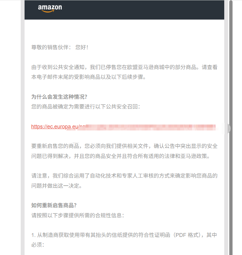 社区 发现 Amazon 产品被欧洲管理局稽查,被召回,现在一直被...