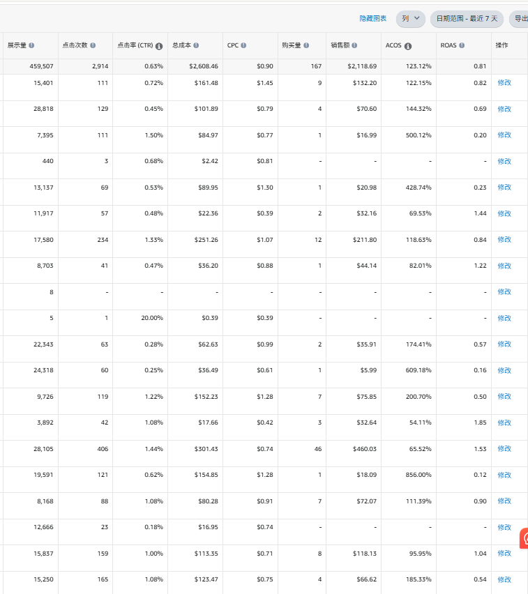 2. 后续意识到产品客单价太低,又上了10-20美金+运费的产品,价格上也提上来想着后续给广告花费更多的空间,站点也在慢慢铺开,但是还没有搞清楚这套运营逻辑,进度也就慢了下来。评论没办法还是4个直评,广告精简成了一组自动广告+手动精准(去看竞品的流量词分析较高流量的关键词去投放  CPC有些达到1-2美金,)+商品投放(价格有优势的)。做了这些操作以后还是没有改进,ACOS还是高的吓人。