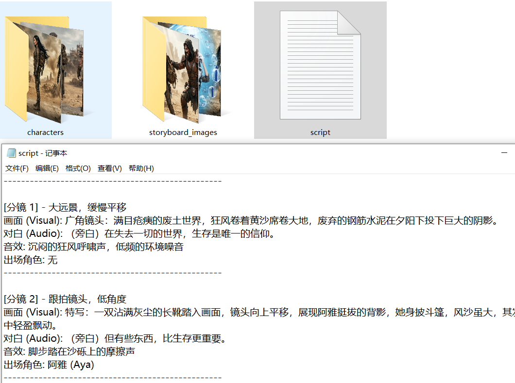 4), 导出项目,包括所有生成的分镜内容 和 分镜图