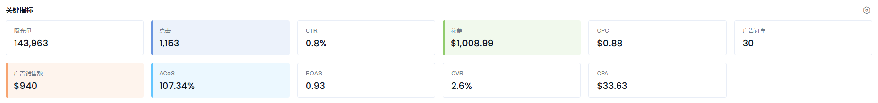 2、手动广告也选了5-10个开了精准,但几个核心词,投产不好,超过100%。所以经常关了开,开了关。