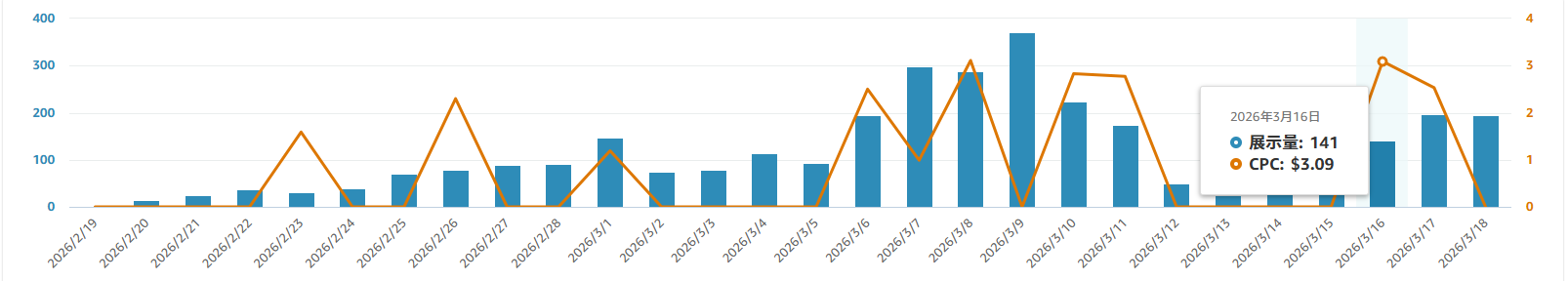 竞品有3.8分,200+购买,还有一个4.0分,100+购买(我的价格也比它低),我投了ASIN定位,竞价也是慢慢加到两澳元左右,曝光也还是一两个。补充一下,这两个是大牌子,看评分比较低,我就尝试投放这些ASIN了,不是大牌子的低分ASIN也投过。