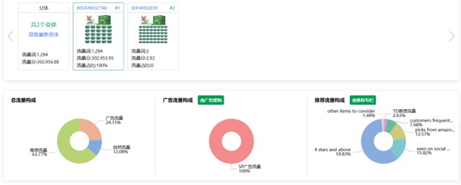 4. 流量构成:用 SIF 查了下过去 2 周流量构成,广告流量只占 24%。推荐流量占了 63%。这么高的推荐流量是这么搞定的?BD+短时间内大量出单?另外,用什么软件能比较精准地查到竞对广告的操作:比如哪天创建了哪些广告活动,主打哪些关键词?