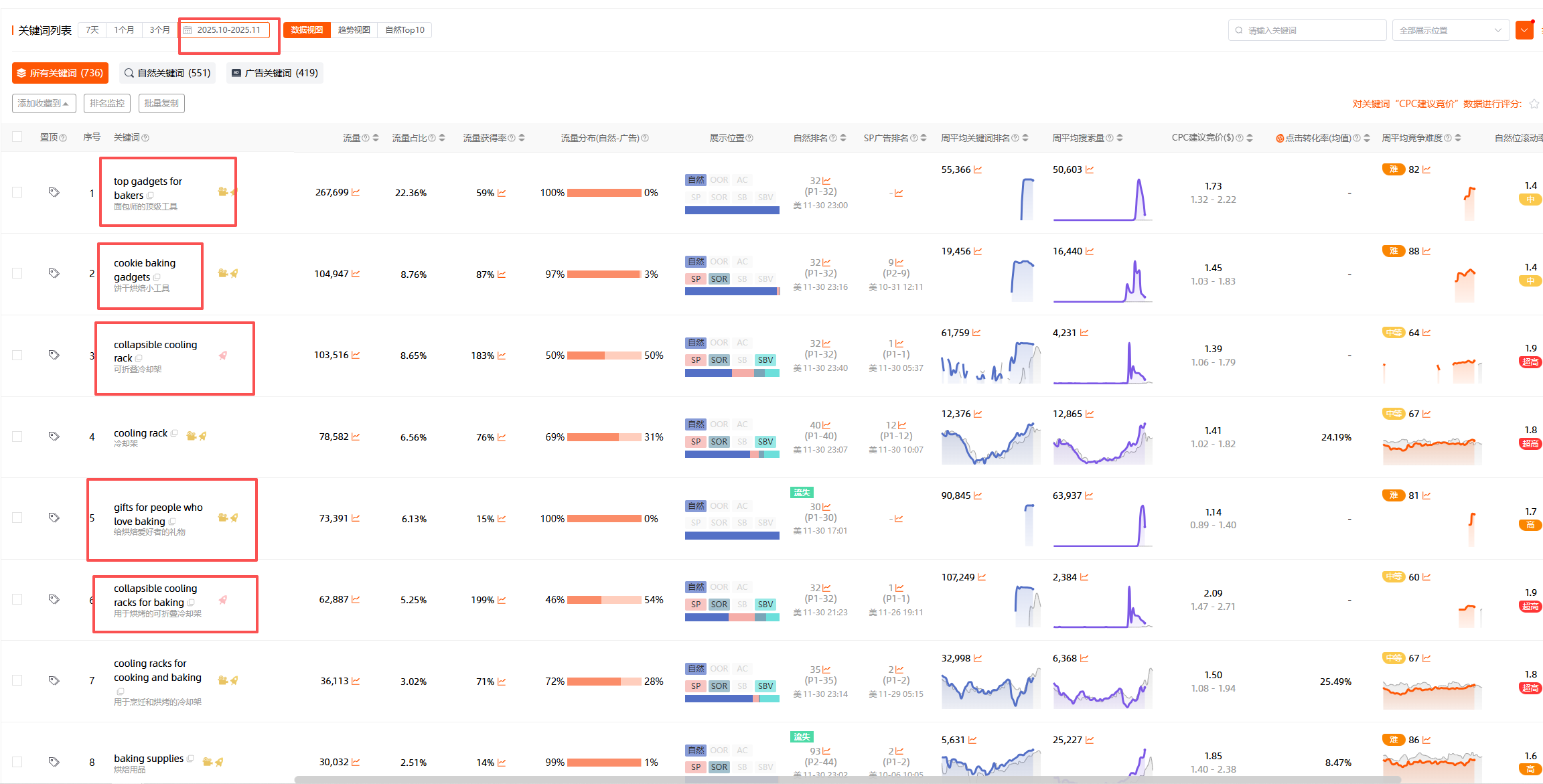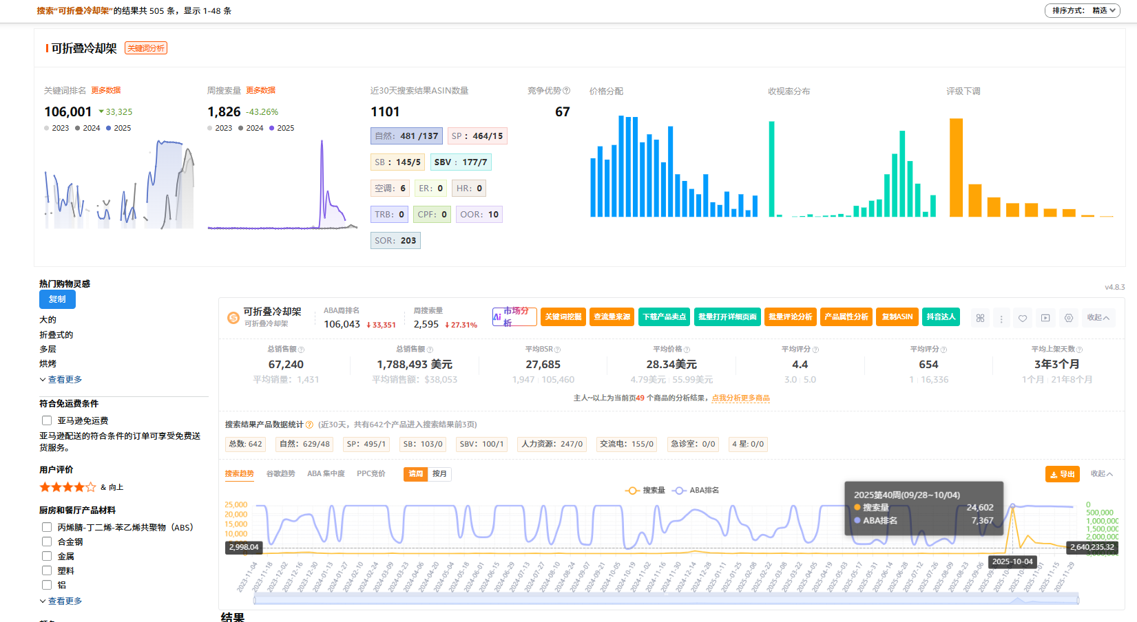 结合目前站内的链接、广告、关键词搜索来看,尤其是对比 24 年 10 月和 25 年 10 月的出单关键词,区别就在于 25 年出现了“可调节/可折叠”词条的关键词,以及送礼关键词。这些关键词的搜索量起得很突然,而且和你选的竞对打的关键词差不多。