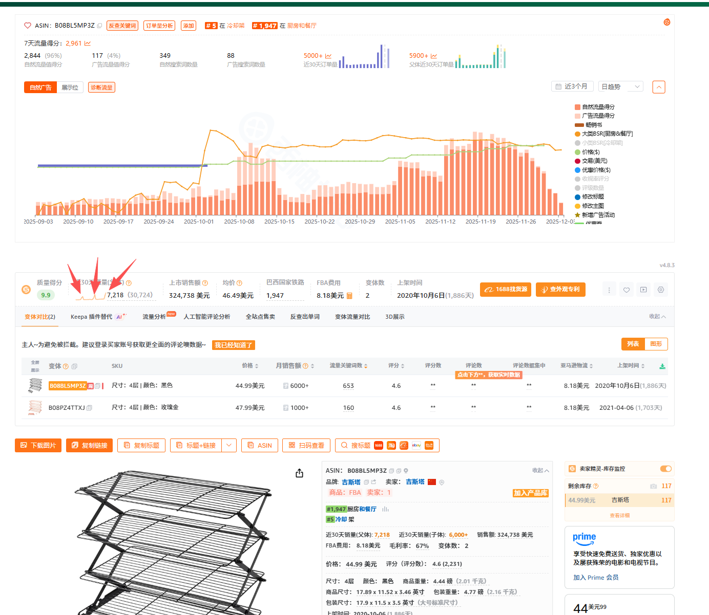 # 运营案例分析 # 最近在拆一个竞品,广告几乎吃自然流+“可调节/可折叠”词25年10月突然起量,今年同款销量暴涨几倍,现在跟这类品还来得及吗?