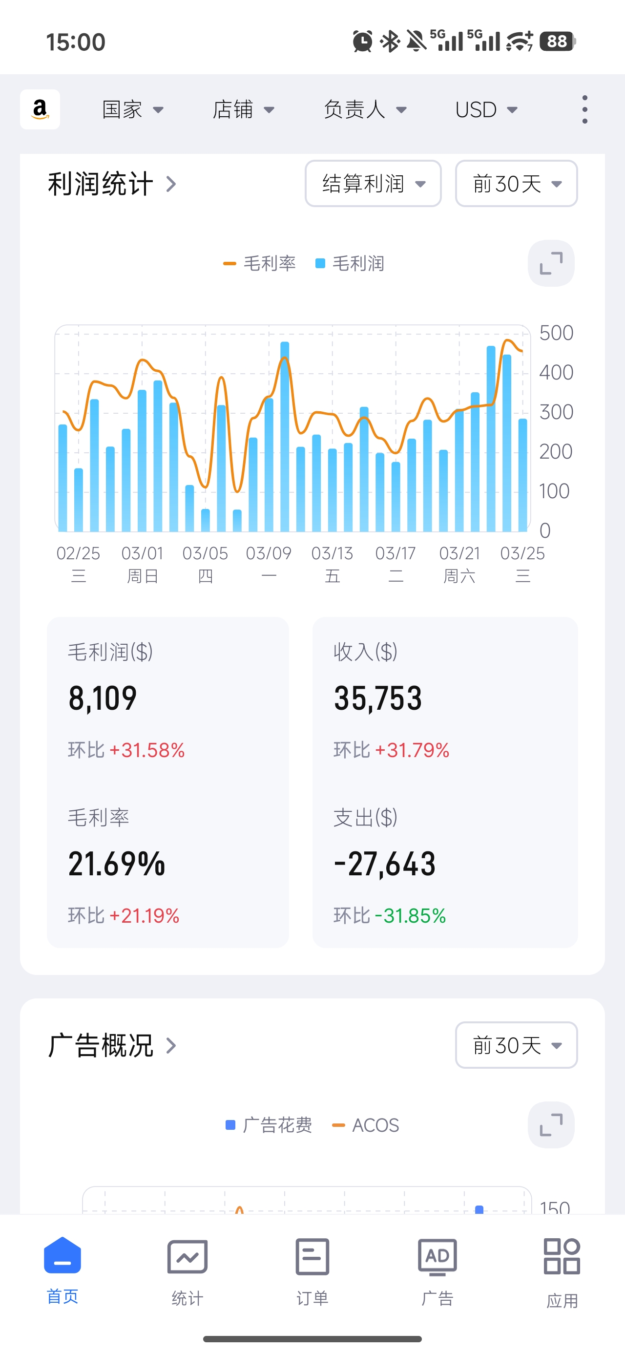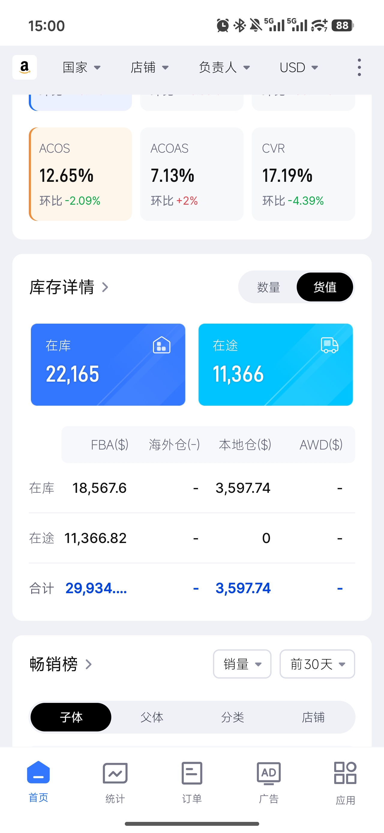 2. 增长太慢,现在达到了1500美金左右。从去年到今年一年时间,感觉时间花费太久。我们讨论是:一,会不会网上做亚马逊增长很快的案例看太多了,导致我们心态急于求成;二,我们资金投入不多,不能要求增长达到高增长。