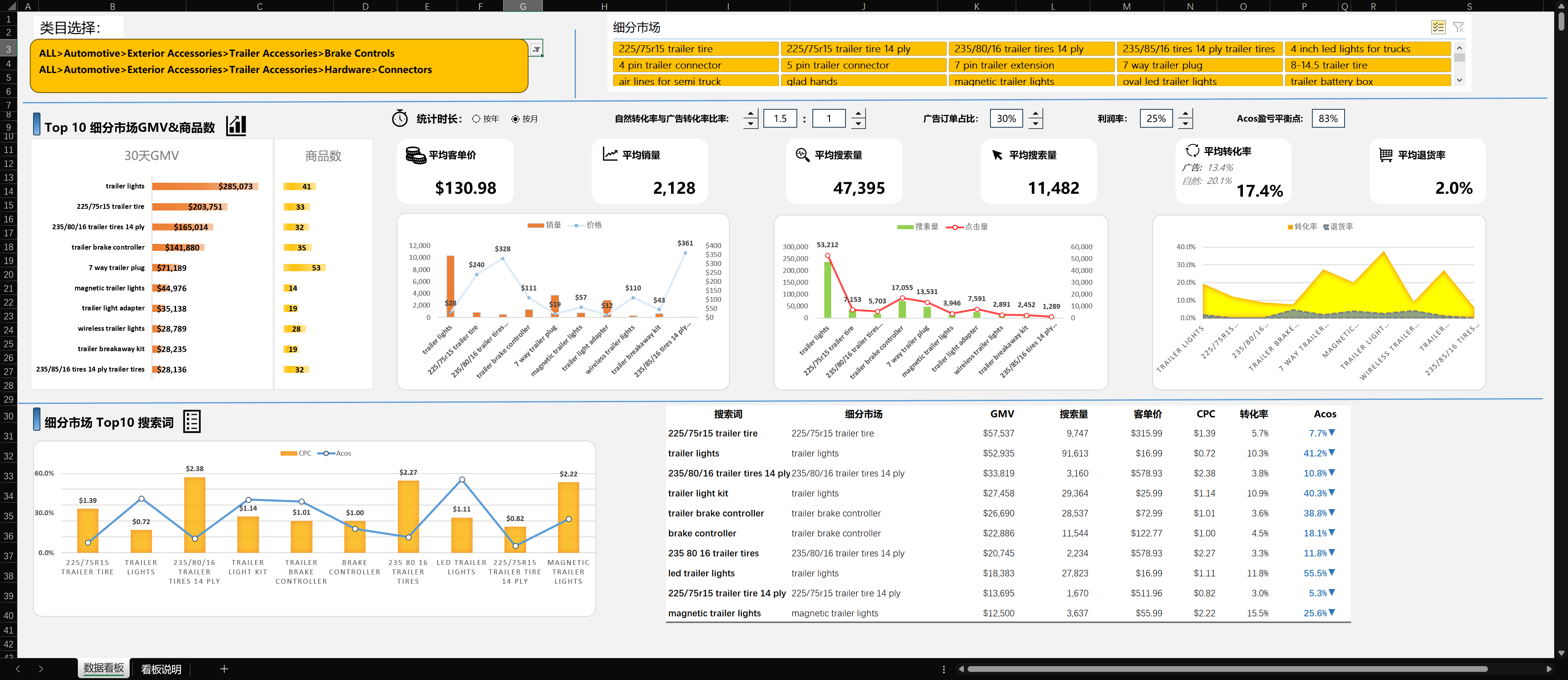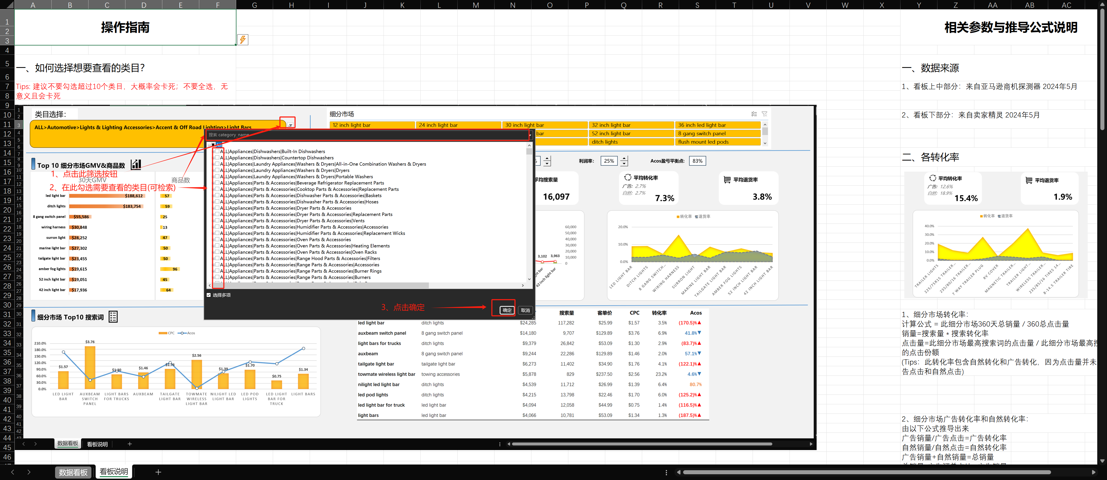 求商品探测器来计算关键词的转化率表格