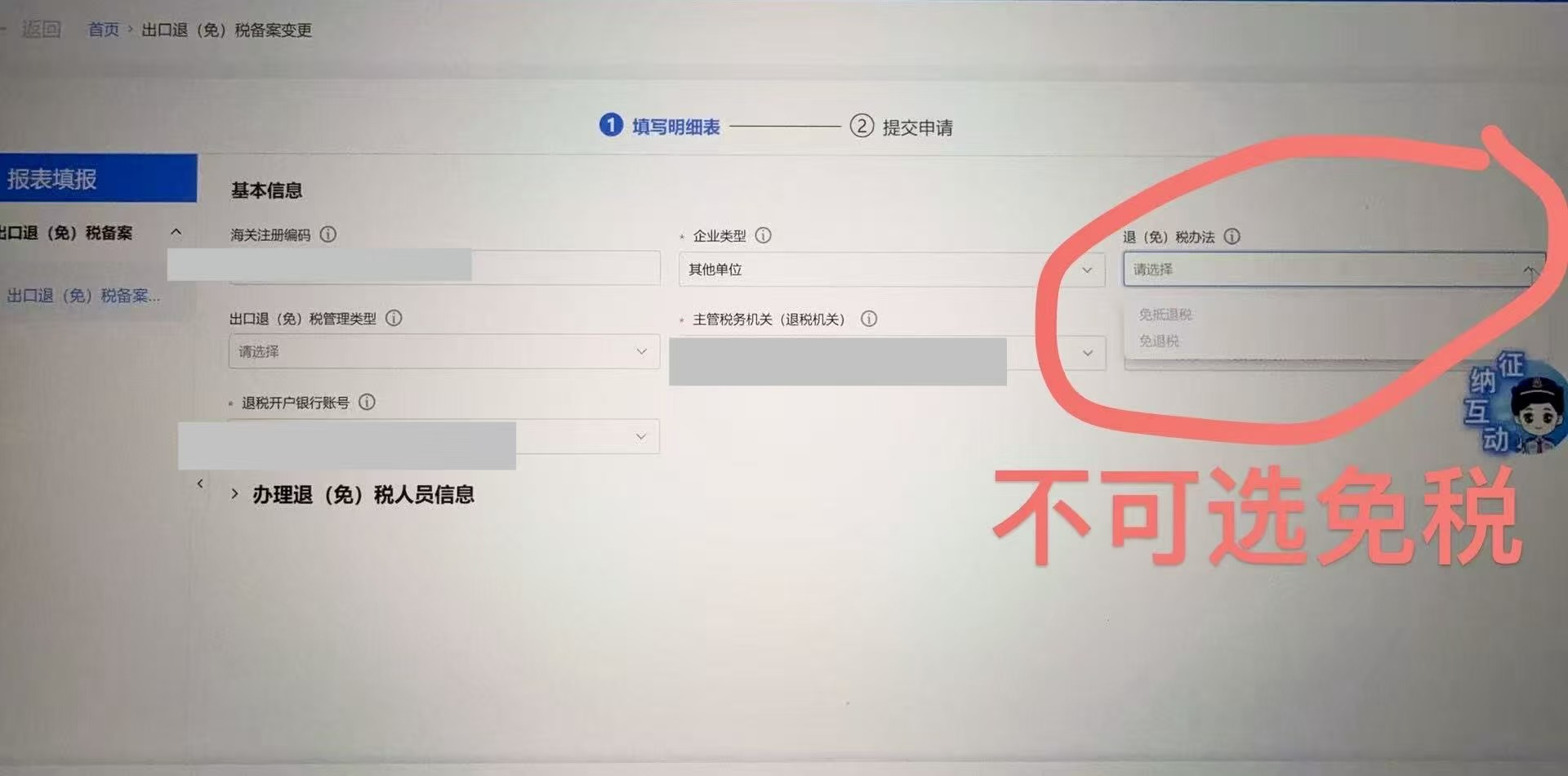广东电子税务局申请免税备案 “免税”不可选?