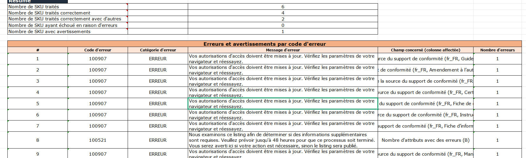 最近在法国站合并变体的时候遇到一个奇怪的报错100907-您的访问权限需要更新。请检查您的浏览器设置并重试。
