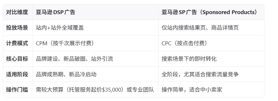 亚马逊DSP广告是基于程序化购买技术的高级广告解决方案,全称Demand-Side Platform(需求方平台),核心是通过自动化系统在亚马逊站内及站外海量平台精准触达目标受众。它不仅支持展示、视频、音频等多种广告形式,还能依托亚马逊消费数据实现深度人群定向,是品牌建设、站外引流的重要工具。DSP广告主要是触达消费者,一般是服务商在投,而且对每月广告预算花费有要求,必须花够一定的数额,亚马逊美国站展示广告按照千次展现量(CPM)收费,美国地区约为4美元/CPM,其他国家站点通常低于美国站。每个站点有不同的要求和最低合同金额限制,最低要求5000美元/月。如果广告商选择从亚马逊团队那里寻求帮助,并对投放广告进行完全托管,最少要35000美元。所以主要是一些大卖在投DSP广告。