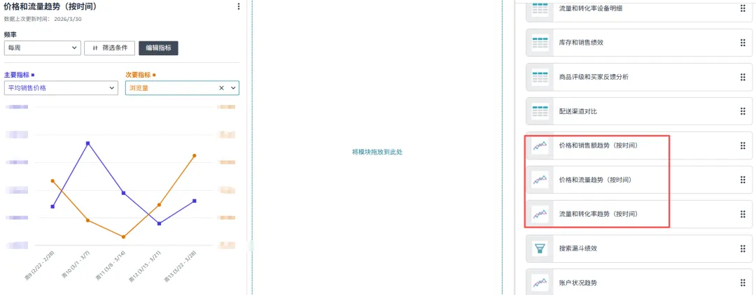 我习惯先用亚马逊后台的“商机探测器”快速判断流量变化。
