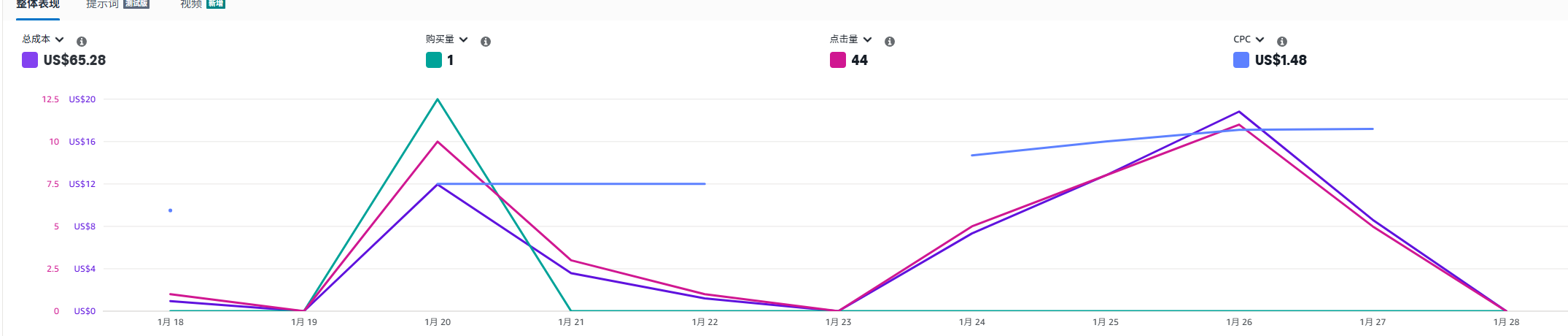首先,低价螺旋的情况下,我不够低价且一直采用自动广告策略,并且单量不稳定,故放弃了第一波推广策略,浪费了接近 600 美元,但好在收录了部分自然词。