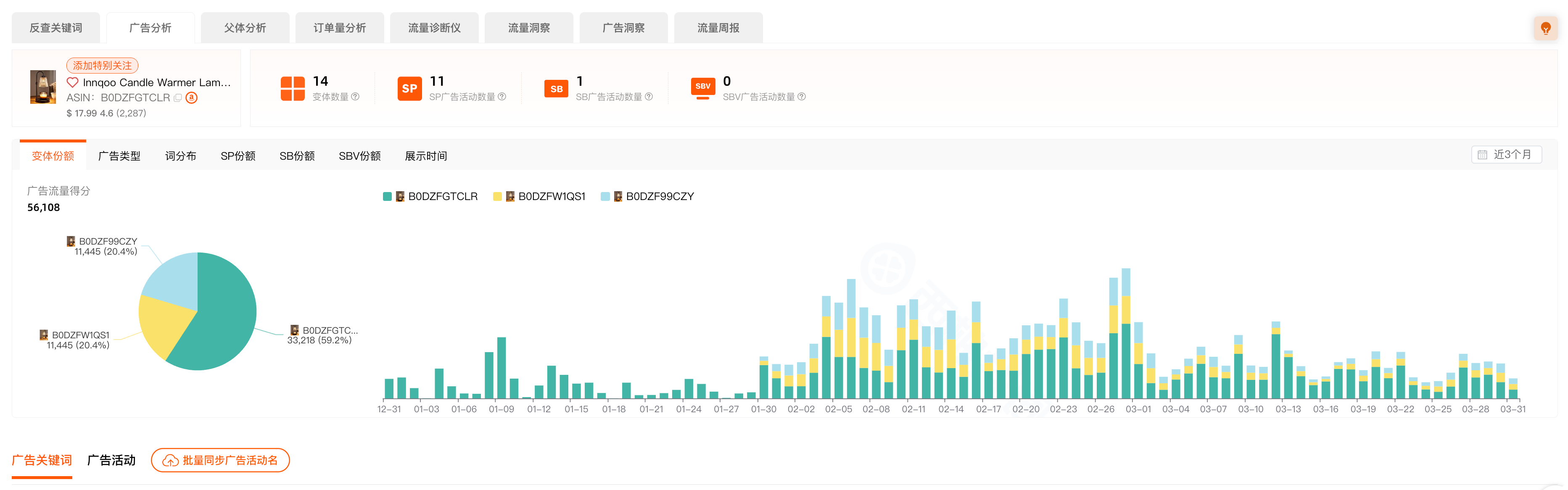 进阶的,比如你要查一个竞品ASIN广告结构,用西柚的广告分析功能可以看到