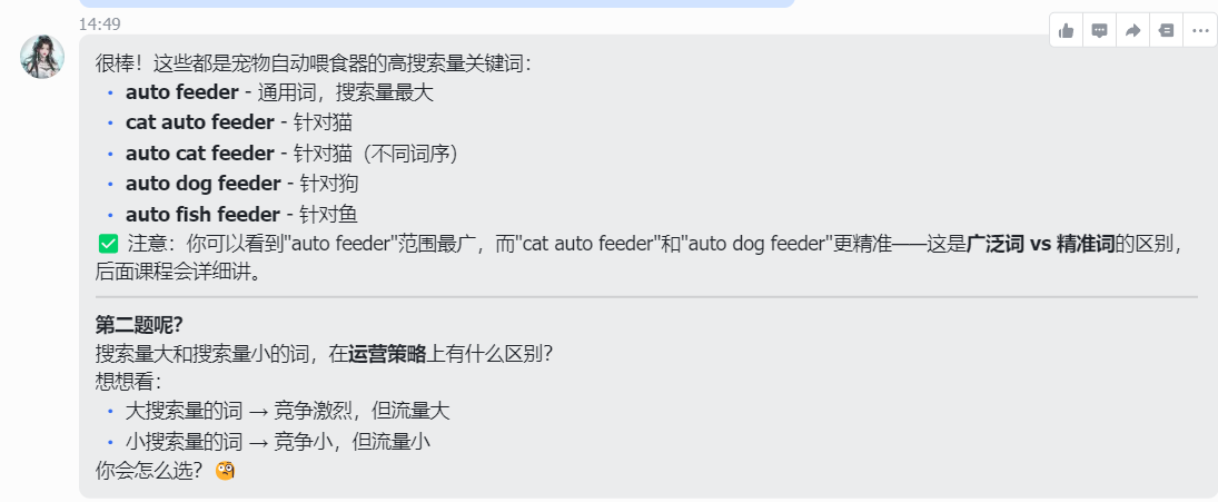 后来AI大模型的出现,算是彻底打破了这道知识垄断的高墙,不管是普通人还是企业员工,都能无门槛、无条件获取互联网上绝大部分公开知识,不管是亚马逊运营、Python编程,还是市场调研、广告优化,随便搜一搜就能找到海量资料,再也不用像以前那样求着别人要资料、花大价钱买课程,这一点确实是时代的进步。