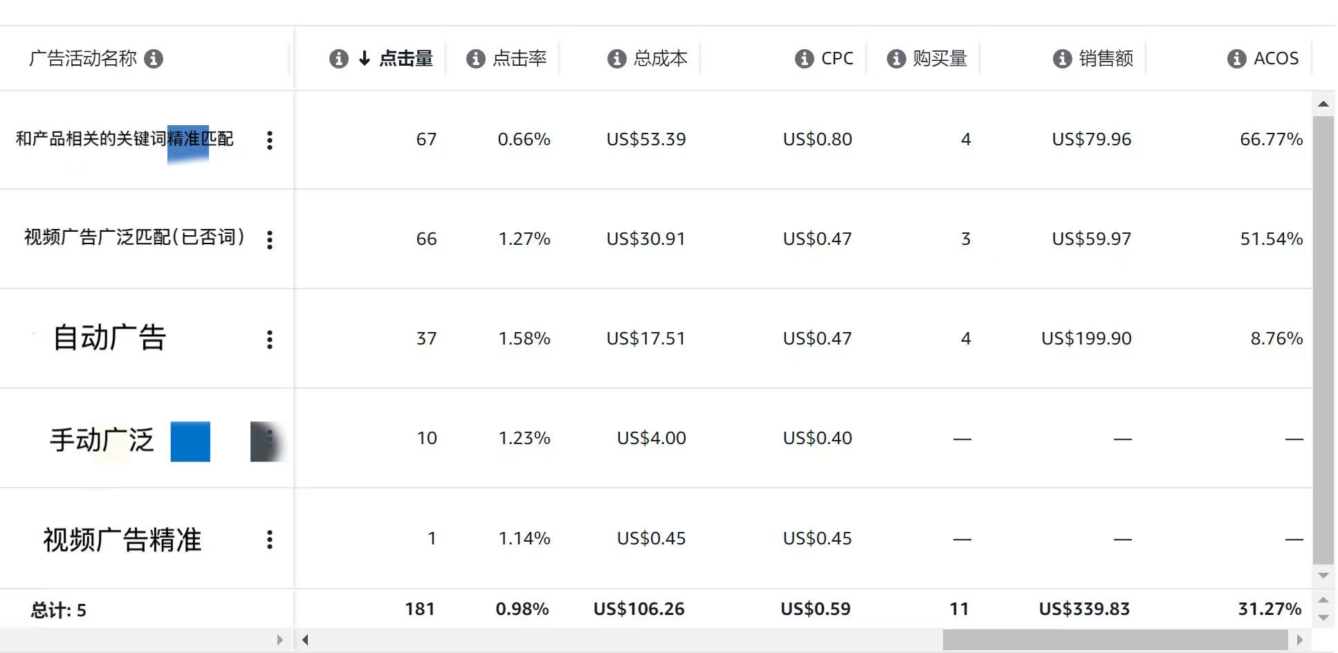 1、手动精准:投放的是和产品相关的关键词,有过转化且有自然排名的词(不高,在第二、三页),CPC出的比较高,想试试看能不能把自然排名推上去,每日预算4-5美金
